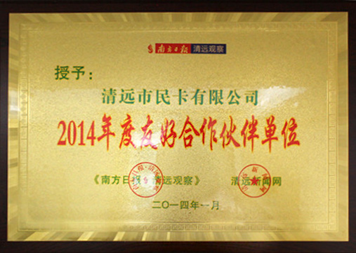 我司榮獲 《清遠(yuǎn)觀察》“2014年度友好合作伙伴單位”。《清遠(yuǎn)觀察》被譽(yù)為“廣清同城第一報(bào)”,見解獨(dú)立,思考獨(dú)到,視角獨(dú)特,深受廣清兩地黨政機(jī)關(guān)和廣大讀者的廣泛好評,是清遠(yuǎn)影響力最大、覆蓋面最廣、發(fā)行量最大的省級主流媒體。