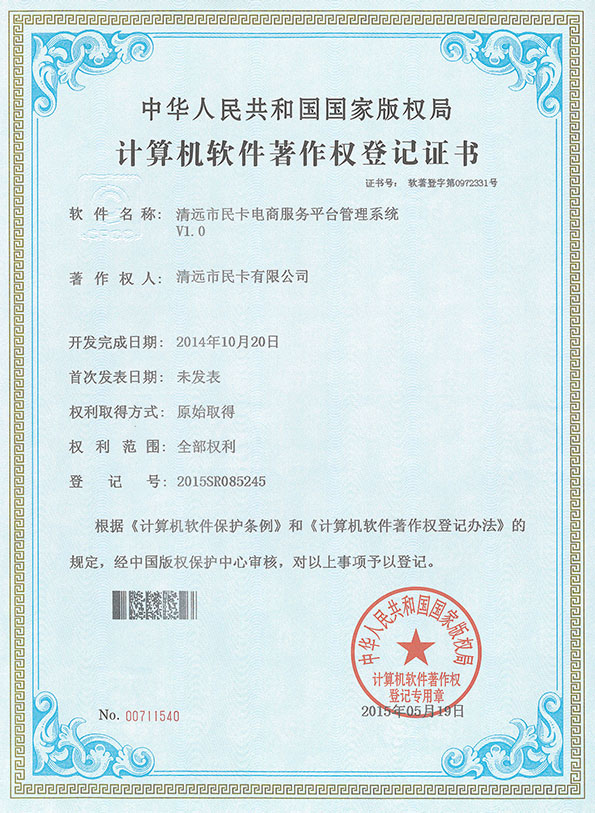 我司有12項(xiàng)自主研發(fā)的軟件獲得了國家版權(quán)局下發(fā)的計(jì)算機(jī)軟件著作權(quán)登記證書。這些軟件著作權(quán)的獲得是研發(fā)團(tuán)隊(duì)獨(dú)立創(chuàng)新的成果,為公司運(yùn)營提供強(qiáng)有力的支持,為可持續(xù)健康發(fā)展打下了堅(jiān)實(shí)基礎(chǔ)。